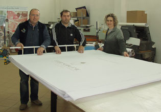… Mi sono imbarcato in questa avventura, ci sono voluti ben 6 giorni di stampa a 18 ore al giorno, e considerando che lavoro da solo potete ben capire come mi sentivo man mano che i giorni passavano. Dopo aver fatto una super pulizia, che non facevo da tempo, al mio SJ 640 ho iniziato a stampare i 700 mq. che ci sono voluti per allestire questo mega catalogo. … Come ho detto nella mia azienda lavoro da solo in produzione, mia moglie in ammistrazione, e quindi dovevo anche ricevere quei clienti che si presentavano e che però non potevo soddisfare facendo capire loro quali erano i motivi. Subito si è sparsa la voce su cosa stessi realizzando. C’è stato come un pellegrinaggio di gente che curiosa voleva vedere quest’opera, tra cui diversi giornalisti che mi hanno fatto anche molte fotografie mentre stavo lavorando.
